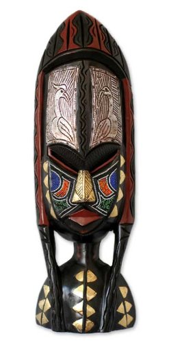 NOVICA Decorative Large African Rubber Wood Mask, Multicolor 'Shower Of Blessings'