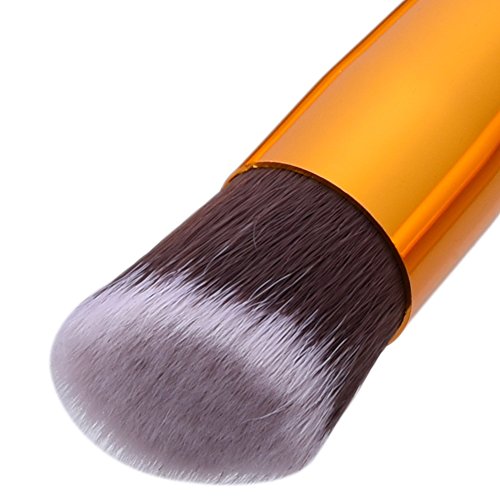 -. Feature : All makeup brushes are made of highest quality material, designed for professional use which will give you a flawless face and eye makeup application / High quality wood handle connecting aluminium tube holding ensure for a long time use and a moderate length design for easy holding / Soft and Silky to the touch, the brushes are dense and shaped well / They are suitable for all types of powder, gel, cream, liquid, mineral, contour products; It comes with a storage bag to carry / Portable and convenient for daily makeup, also perfect gift for family and friends