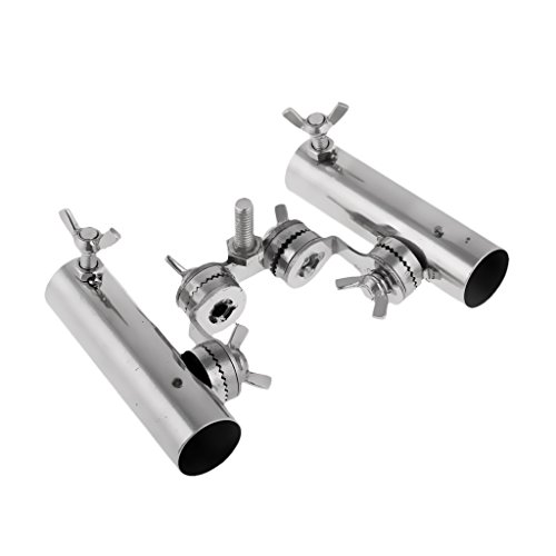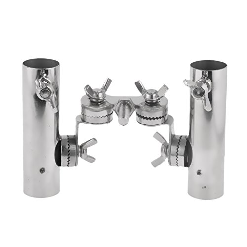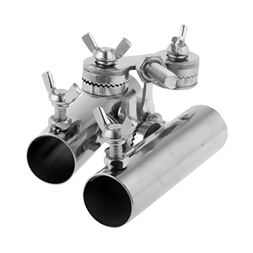-. Title : MagiDeal Stainless Steel 2 Double Fishing Rod Pole Bracket Holder Support with Black Handle
