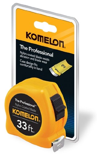 Komelon 4933 The Professional Nylon Coated Steel Blade Tape Measure 33-Foot by 1-Inch, Yellow Case