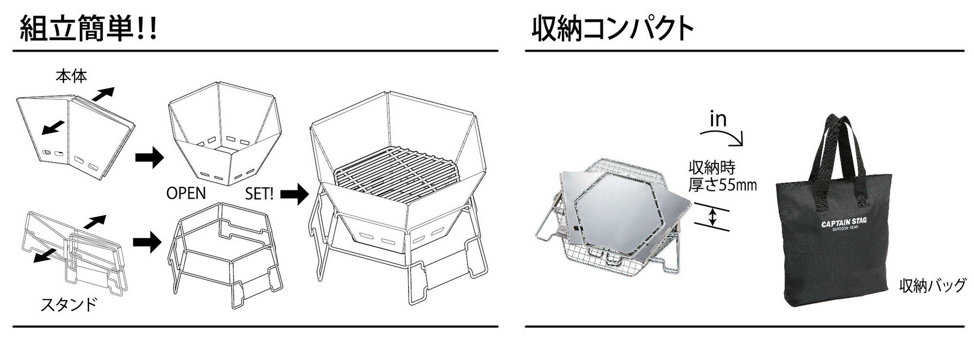 Durable stainless steel. Compact storage and convenient to carry.