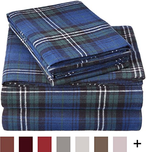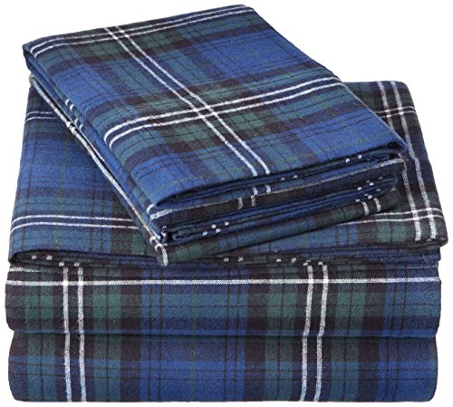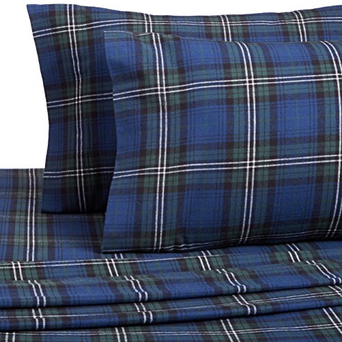 Pinzon 160 Gram Plaid Flannel Sheet Set - Queen, Blackwatch Plaid