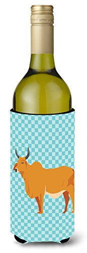 Caroline's Treasures BB7999LITERK Zebu Indicine Cow Blue Check Decorative Bottle Hugger, 750 ml, Multicolor
