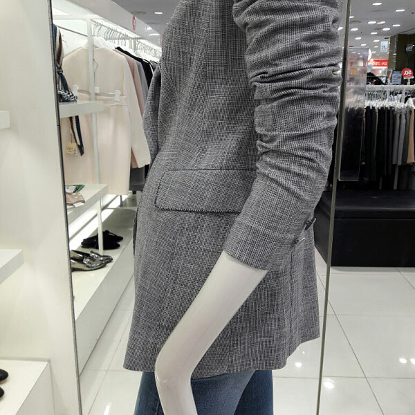 전체적으로 잔체크패턴이 세련되면서도 멋스러운 기본자켓입니다 카라부분에 포인트액세사리가 여성스러우며 살짝 들어간 라인이 날씬해보이는 핏입니다 바지나 스커트에 잘 어울리며 간절기에 착용하기좋은 두께감입니다정장으로도 캐쥬얼하게도 연출하기좋은 아이템입니다