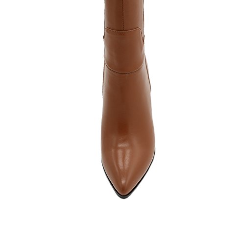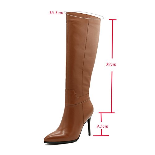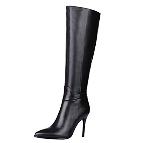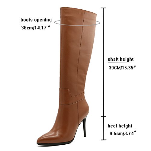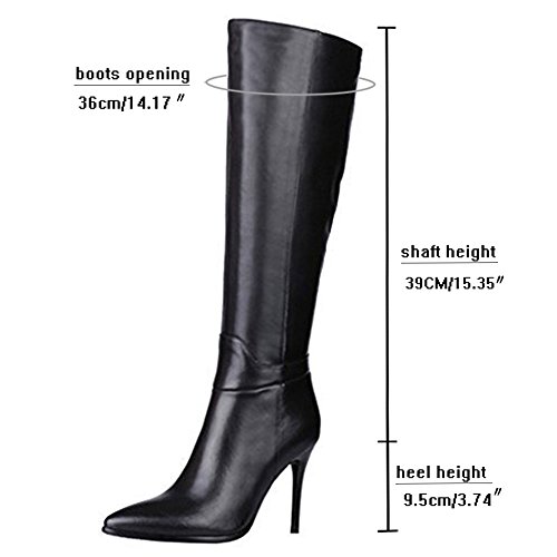 FEATURES: Heel height:9.5cm for US 8,may floating up and down by size. Material:Shoes vamp are genuine leather,the shape are handmade. Size Fit:Shoes fits true to size for most customer.Chose half size up or down if you have a wide or thin feet. Proess and Shipping :1.Fulfillment by VOCOSI:1-2 Process 5-10 Shipping.2.Fulfillment by Amazon.