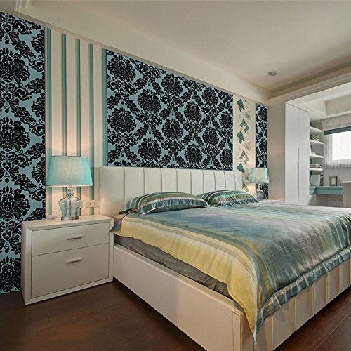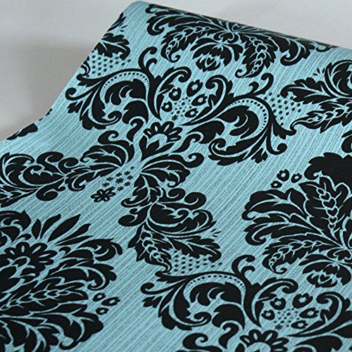 SimpleLife4U Black Damask Contact Paper Self-Adhesive Shelf Liner Night Stand Decor Sticker 17.7 Inch By 9.8 Feet