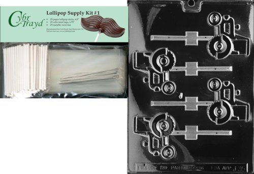 Cybrtrayd Tractor Lolly Jobs Chocolate Candy Mold with Lollipop Supply Bundle of 25 Lollipop Sticks, 25 Cello Bags, 25 Silver Twist Ties and Instructions