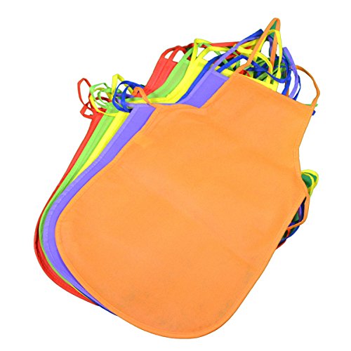 Assorted color kids aprons protect children in the kitchen or during art projects, great for school, arts and crafts and more! Ages 3+, 13" x 19" with 14" long ties. Pack of 12. Assorted colors. One size fits most.Feature