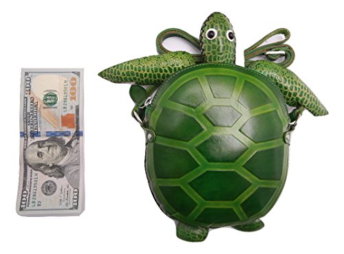 PurseWorld Women's Handmade Leather Green Sea Turtle Shoulder Bag