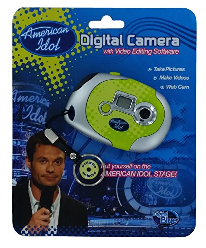 This is the perfect digital camera to hook on your keychain, throw in your pocket and go! Be ready to take pictures any time. Once you have your shots, download into the specially created software and put yourself on the American Idol set! Product Specs Dimensions: 2.97" x 1.99" x .81" Image Resolution: 352 x 288 (CIF) / 176 x 144 (QXIF) Memory: 16MB Picture Capacity: 20 pictures (CIF) / 80 pictures (QXIF) PC Interface: USB Battery: 1 AAA required Package Contents Include: Mini Digital Keychain Camera, Keychain, USB Cable, American Idol Editing Software. Customer Support: American Idol Digital Keychain Camera 2.0 Quick-Start Guide This item has a one-year limited warranty.