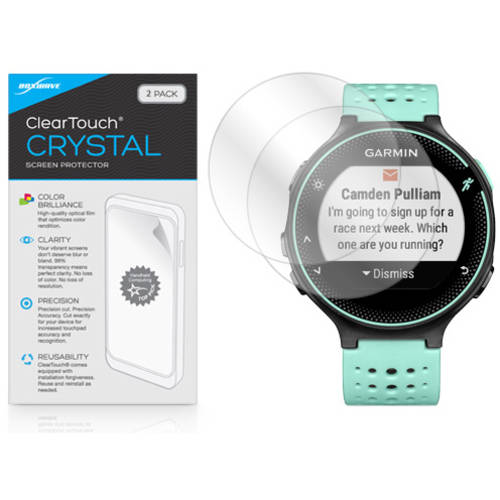 Keep your screen pristine with BoxWaves ClearTouch Crystal, the industry leader in screen protection. Our innovative ClearTouch material provides maximum screen protection while preserving crystal clear optical clarity. Your Forerunner 235s screen will also be protected from dust and harmful scratches. Made with a firm, high-quality dual-layered film, our ClearTouch Crystal is engineered with precision to fit the exact dimensions of your beloved Forerunner 235. The special glueless adhesive will never leave any sticky residues that may damage your screen. Unlike other brands of screen protectors, you can also re-use the ClearTouch screen protector by simply washing the unit with warm water and hand soap to renew the adhesive quality. Experience the benefits yourself and see why so many others use the ClearTouch Crystal to enhance their Forerunner 235 screen! Garmin Forerunner 235 Screen Protector, BoxWave, ClearTouch Crystal, 2-Pack: