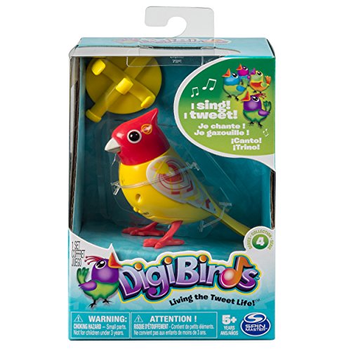 We Tweet! We Sing! We Move! Experience the 'tweet life with DigiBirds! This interactive, tabletop bird is full of animated movements and can sing up to 58 songs! Use the included Whistle Ring to activate your DigiBird's songs and listen as it performs a solo. Collect multiple birds to hear them harmonize together as you build a Digibirds choir. Discover an entire assortment of beautifully designed birds. Start livin' the tweet life with Digibirds!Feature