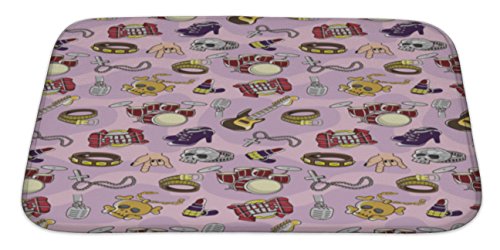 Gear New No Slip Microfiber Memory Foam Rock Music Pattern Bath Rug Mat, 34" X 21"