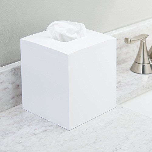 mDesign Square Facial Tissue Kleenex Box Cover Holder for Bathroom Vanity Countertops, Bedroom Dressers, Night Stands, Desks and Tables - White