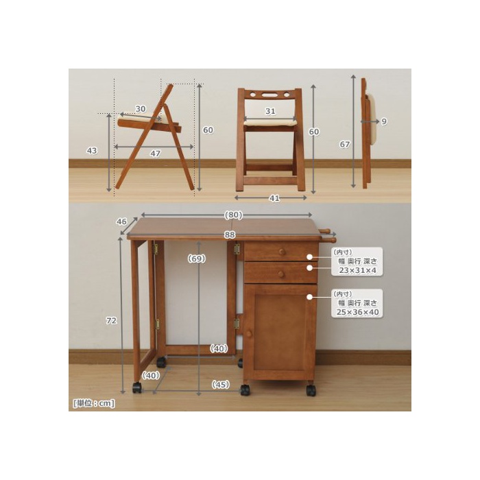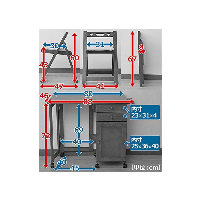 사이즈:데스크=폭88×(길이)깊이46×높이72cm,체어=폭41×(길이)깊이47×높이60cm