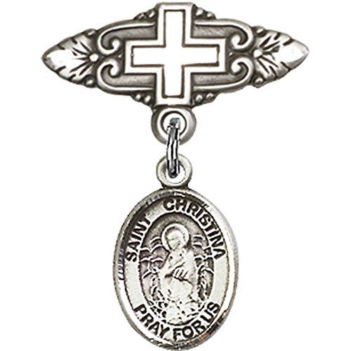 -. Title : Sterling Silver Baby Badge with St. Christina the Astonishing Charm and Badge Pin with Cross 1 X 3/4 inches