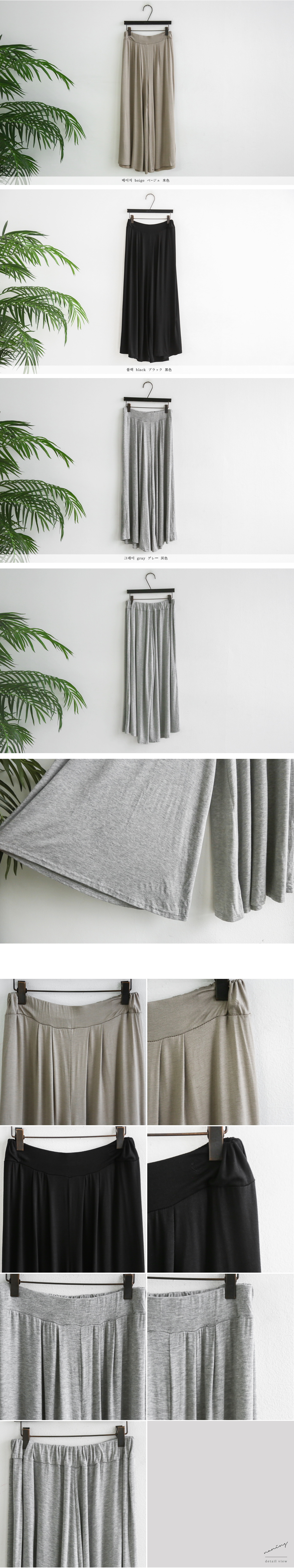 데일리로 즐기기 좋은 와이드팬츠 소개해드릴께요.허리가 밴딩으로 처리되어있어 사이즈에 크게 구애없이 편안하게 착용이 가능하며넉넉한 품으로 여유로운 착용감을 느끼실 수 있습니다.신축성이 좋아 활동성있는 스케줄도 문제없이 소화가 가능하구요.베이직한 디자인이지만 걸을때마다 살랑살랑한 예쁜 실루엣을 연출해주어기본티셔츠나 니트 등과 함께 별다른 스타일링없이 매치해주셔도 스타일리쉬하답니다.