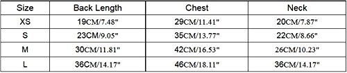 ?:Description: ?:Quantity: 1PC ?:Comfortable shirt is? washable and easy to care ?:Material:?Cotton ?: ?:Package Include: ?:1 *Dog Cat? T Shirt ?: ?:Size: XS==Back Length:19CM/7.48"===Chest: 29CM/11.41"====Neck: 20CM/7.87" ?:Size: S===Back Length: 23CM/9.05"===Chest: 35CM/13.77"===Neck: 22CM/8.66" ?:Size: M===Back Length: 30CM/11.81"==Chest: 42CM/16.53"===Neck: 26CM/10.23" ?:Size: L===Back Length: 36CM/14.17"==Chest: 46CM/18.11"===Neck: 36CM/14.17" 0