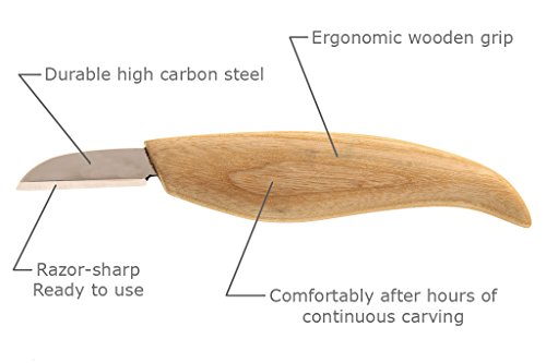 BeaverCraft, Cutting knife for fine chip carving wood and general purpose wood carving knife - best bench detail carving knife - carbon steel and razor-sharp - great for whittling begginers