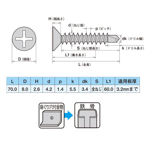 ●座ぐり穴付金物+鉄骨用ドリルビス