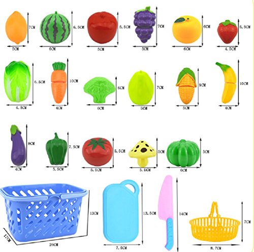 -. Feature : ❤️Have more funs:24Pcs pretend cutting toys playset / ❤️Safety Quality Control: Made of safe and environmental materials, round edge design will provide maximum security for your kids / ❤️Social Skills: The basics of communication, cooperation, and collaboration; encourages trust, friendship, and language development / ❤️Imagination Creativity:Help develop child's mind, creativity and thinking ability and train their hand-eye-coordination and hand flexibility by their own operation / ❤️Kitchen pretend play food fruit set for kids above 3 years old
