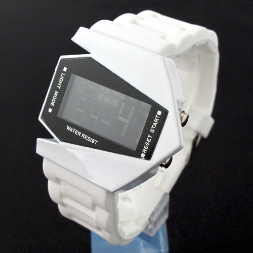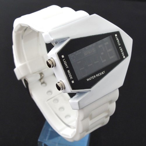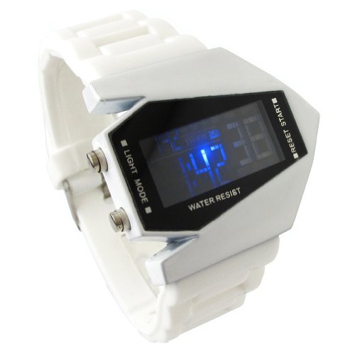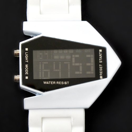-. Title : YouYouPifa Airplane Style Digital Display LED Rubber Strap Wrist Watch (White)