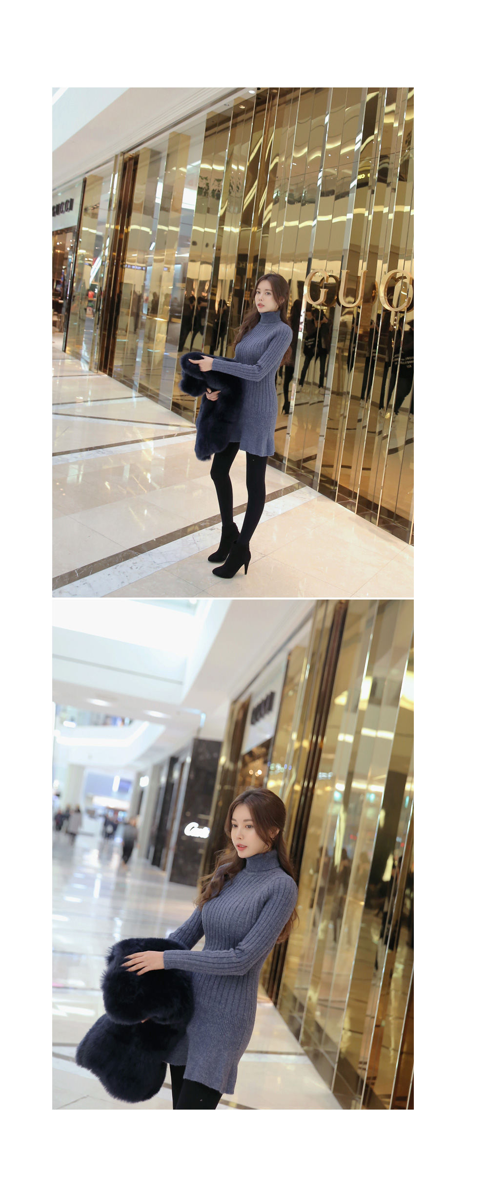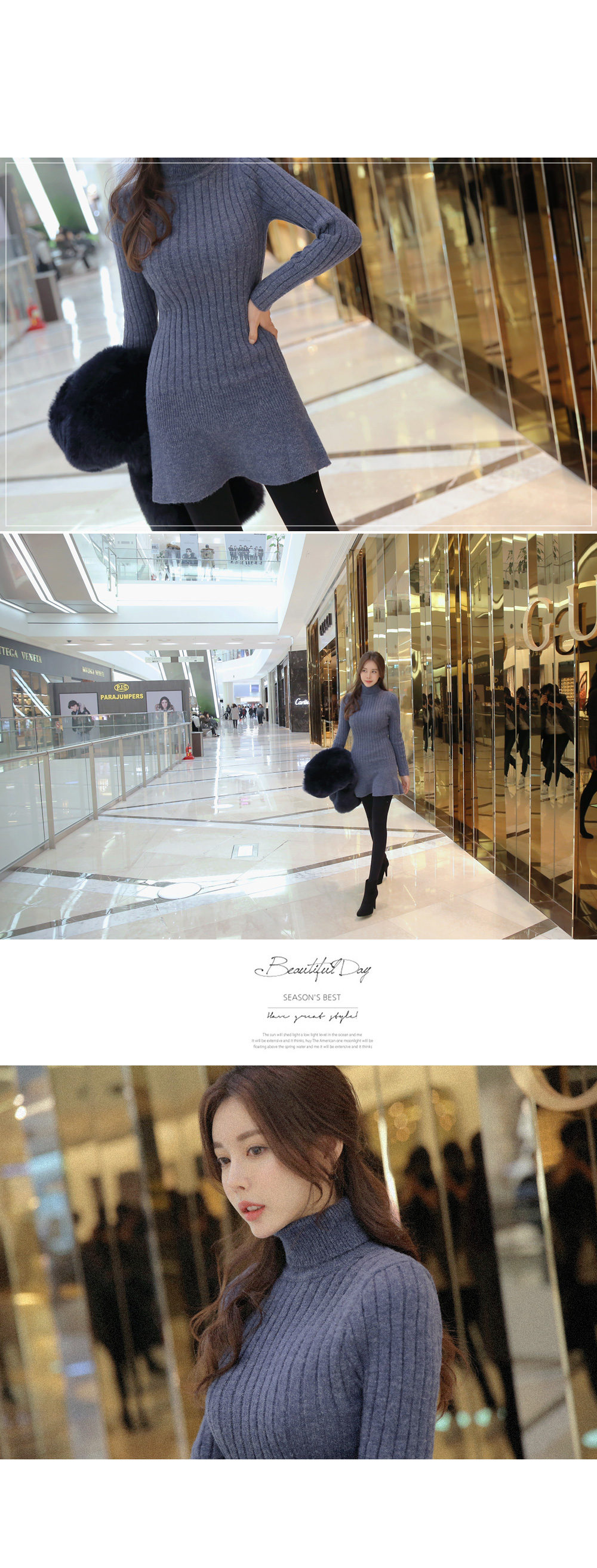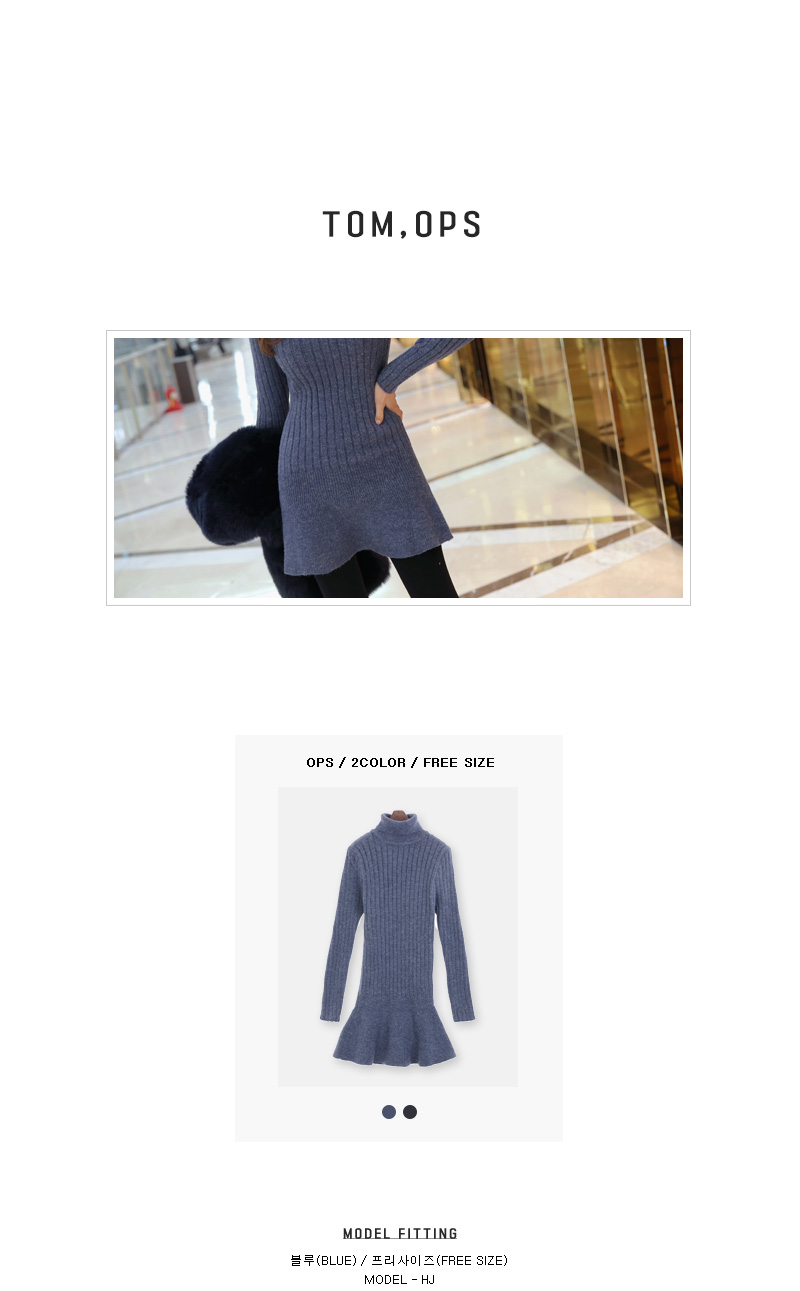 폴라니트 디자인으로 보온효과 좋구요 한층 깔끔하고 모던한 무드를 선사 해 드리구요. 바스트부터 힙라인까지 슬림하게 핏되는 날씬핏 원피스랍니다 ! 밑단 프릴이 포인트로 귀여운 느낌이구요. 신축성이 좋아 편안한 착용감을 드리는건 물론이구요. 베이직한 디자인과 컬러감으로 다양한 아우터에 잘어울려 준답니다.