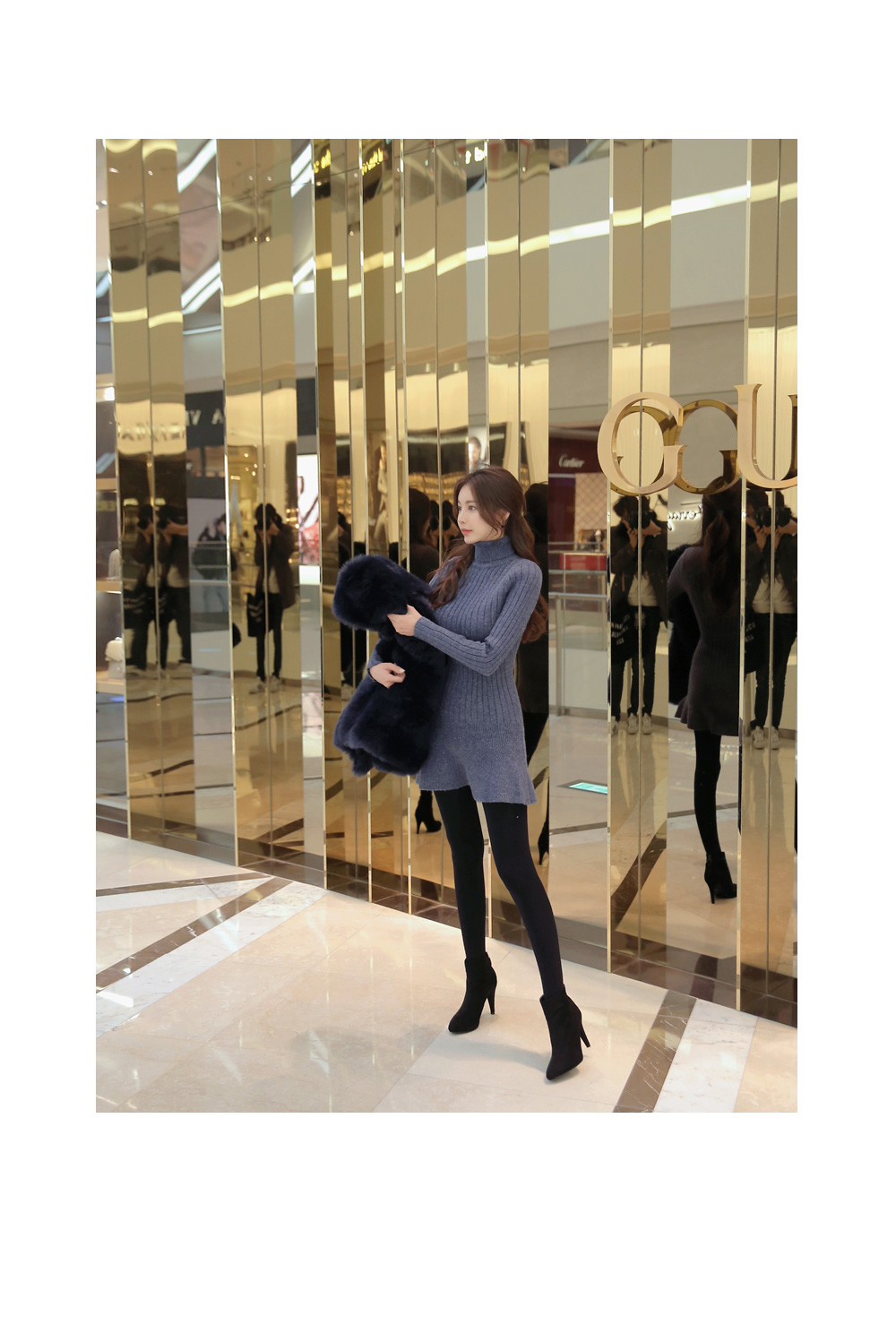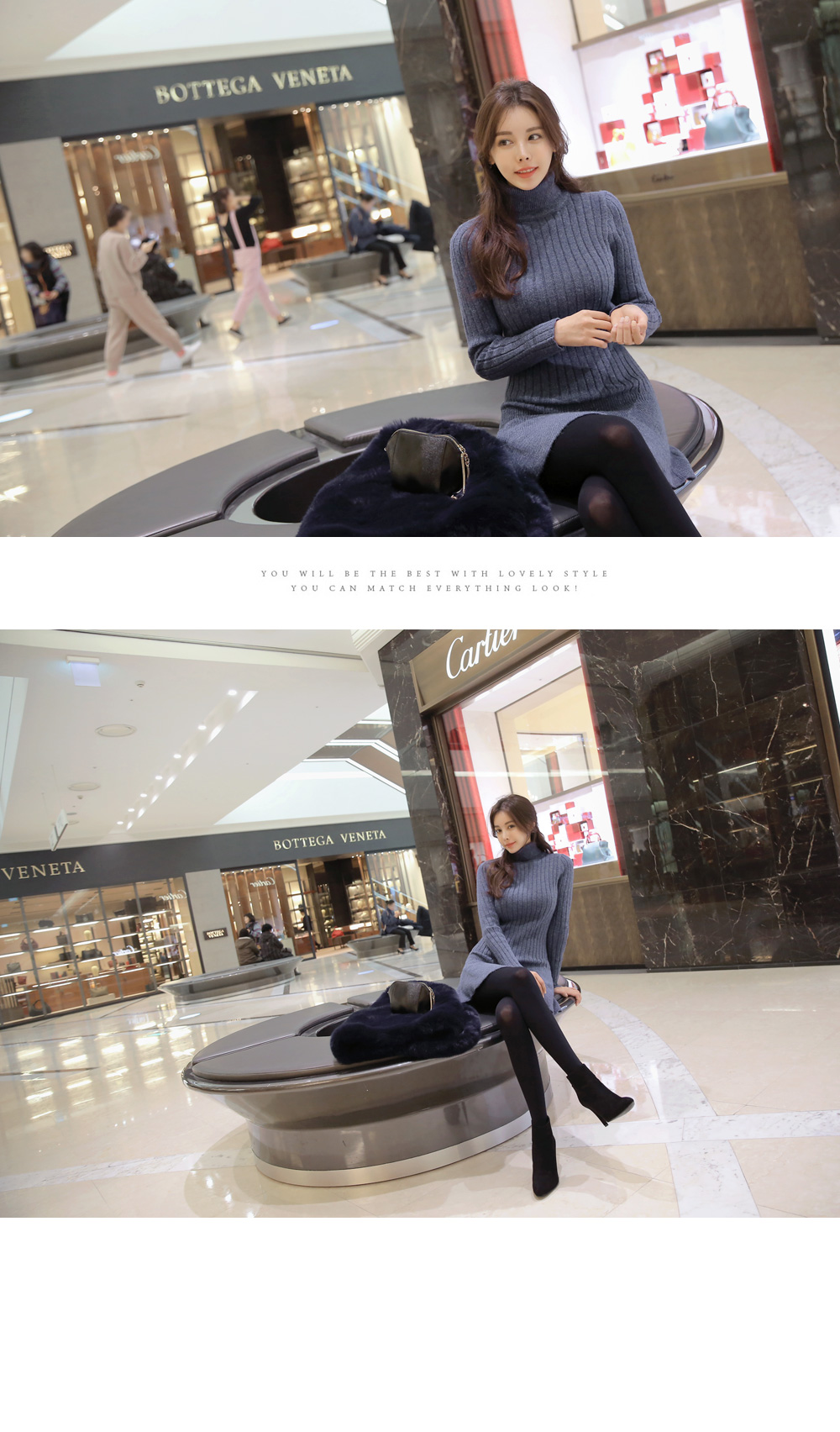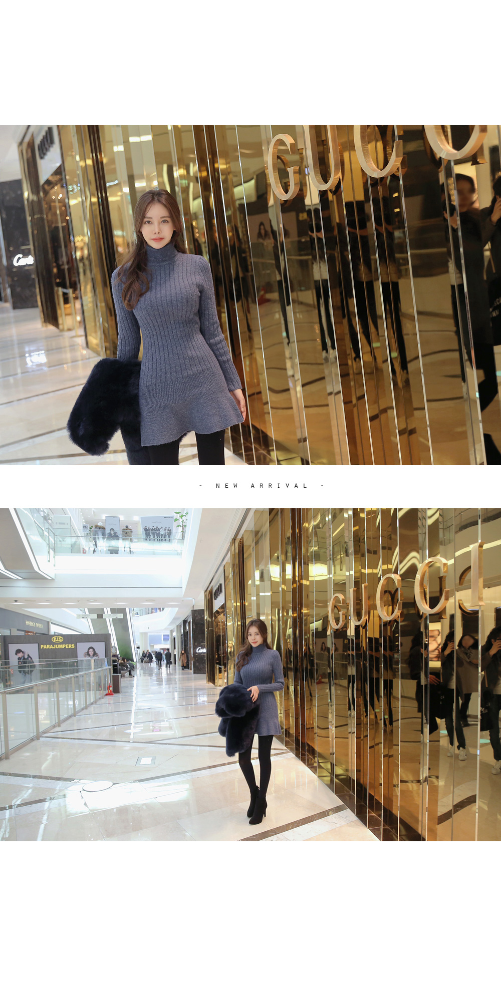 폴라니트 디자인으로 보온효과 좋구요 한층 깔끔하고 모던한 무드를 선사 해 드리구요. 바스트부터 힙라인까지 슬림하게 핏되는 날씬핏 원피스랍니다 ! 밑단 프릴이 포인트로 귀여운 느낌이구요. 신축성이 좋아 편안한 착용감을 드리는건 물론이구요. 베이직한 디자인과 컬러감으로 다양한 아우터에 잘어울려 준답니다.