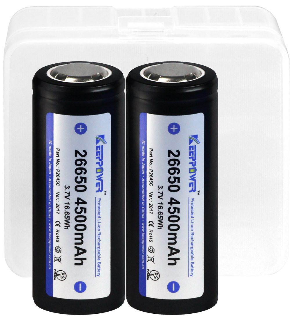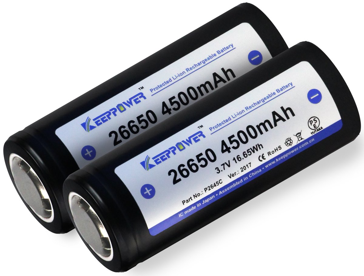 KEEPPOWER 26650/4500 mAh Li-ion battery boasts high safety with a 26650 standard lithium ion battery.