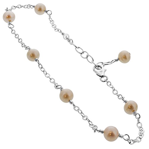 -. Title : Gem Avenue Sterling Silver Freshwater Pearl Anklet