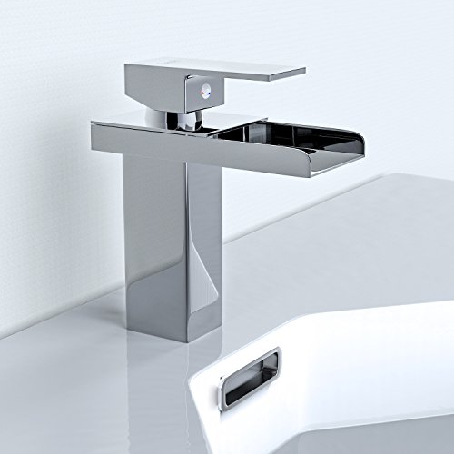 BuenaVo B-1081 Single Handle Waterfall Bathroom Sink Faucet, Chrome Finish