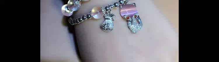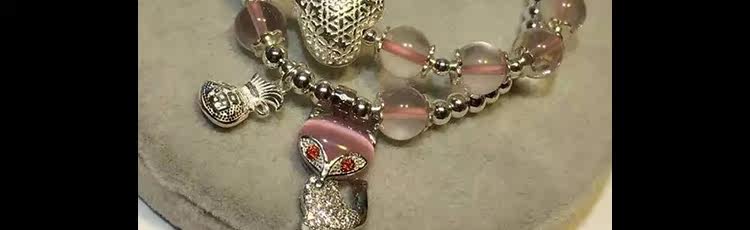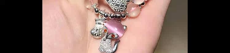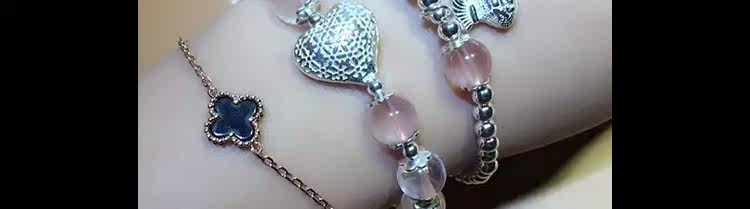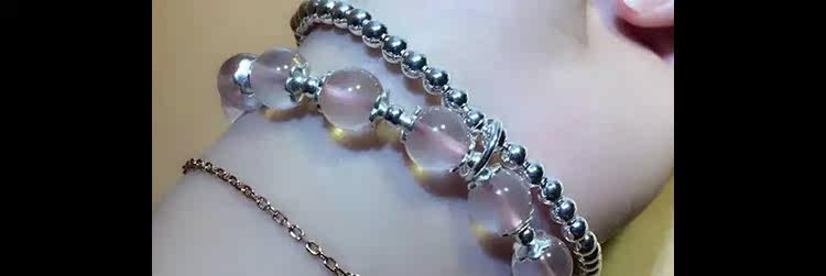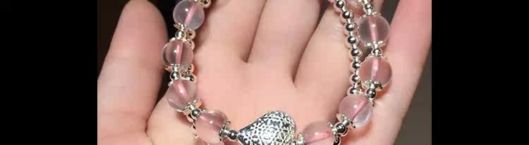 天然冰种粉水晶手链女款粉晶手串多圈多层双圈 925银狐狸水晶饰品