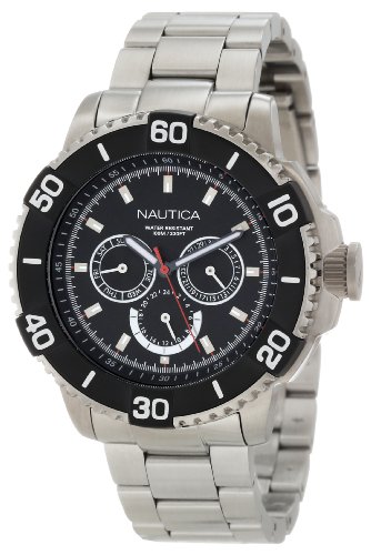 -. Binding : Watch -. Brand : Nautica -. Department : mens -. EAN : 0656086052596 -. Feature : Round watch with black dial featuring three subdials, gear-edge bezel, and screw-down crown / 46 mm stainless steel case with mineral dial window / Japanese quartz movement with analog display / Stainless steel link bracelet with fold-over clasp with double push-button safety / Water resistant to 100 m (330 ft): In general, suitable for swimming and snorkeling, but not scuba diving -. Label : Nautica -. Manufacturer : Nautica -. Model : N19587G -. MPN : N19587G -. PackageQuantity : 1 -. PartNumber : N19587G -. ProductGroup : Watch -. ProductTypeName : WATCH -. Publisher : Nautica -. ReleaseDate : 2012-07-15 -. Studio : Nautica -. Title : Nautica Men's N19587G NST 501 Classic Analog Watch -. UPC : 656086052596