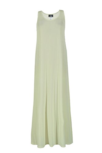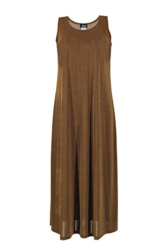 90% Polyester, 10% Spandex. Sleeveless and soft round-neckline long dress and 50 inches in length. Hand or machine wash in cold water.