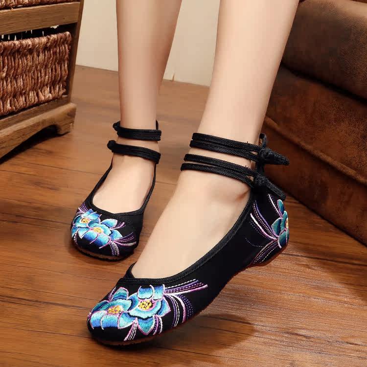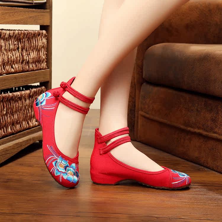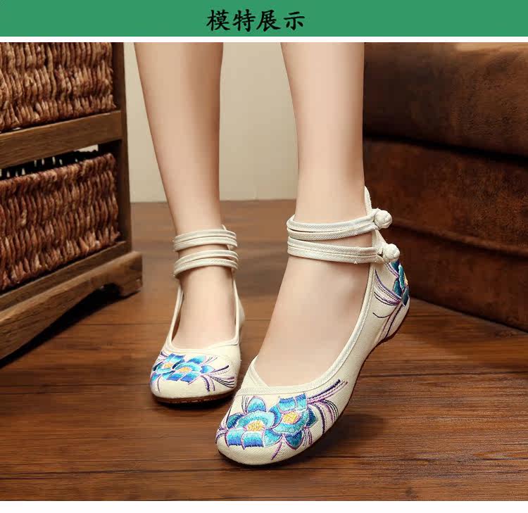 白色绣花鞋女古风鞋子女汉服鞋复古中国风内增高平底仙女学生公主