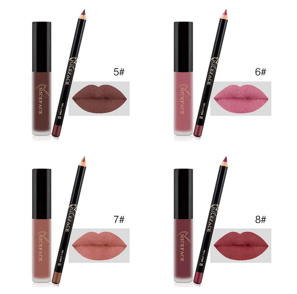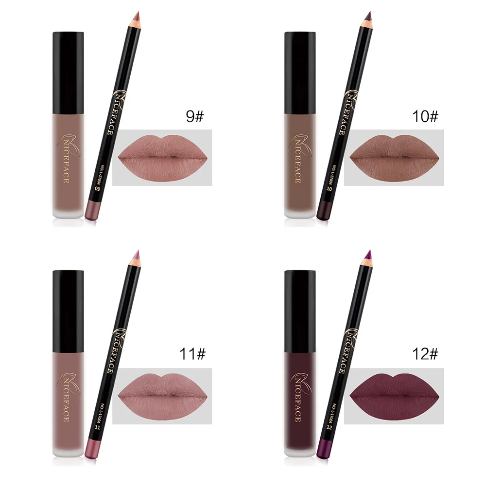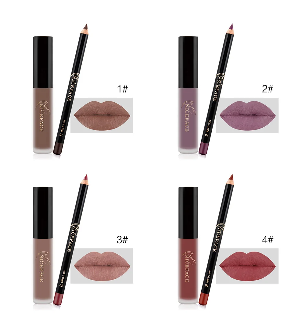 2017 NICEFACE Lipstick Sets Long Lasting Matte Liquid Lip Stick + velvet Lips Pencil Makeup Kit Waterproof Batom Sexy Nude Liquid Lip Gloss