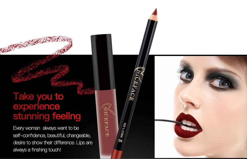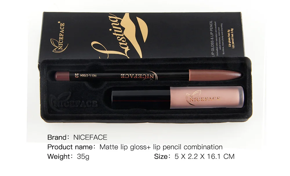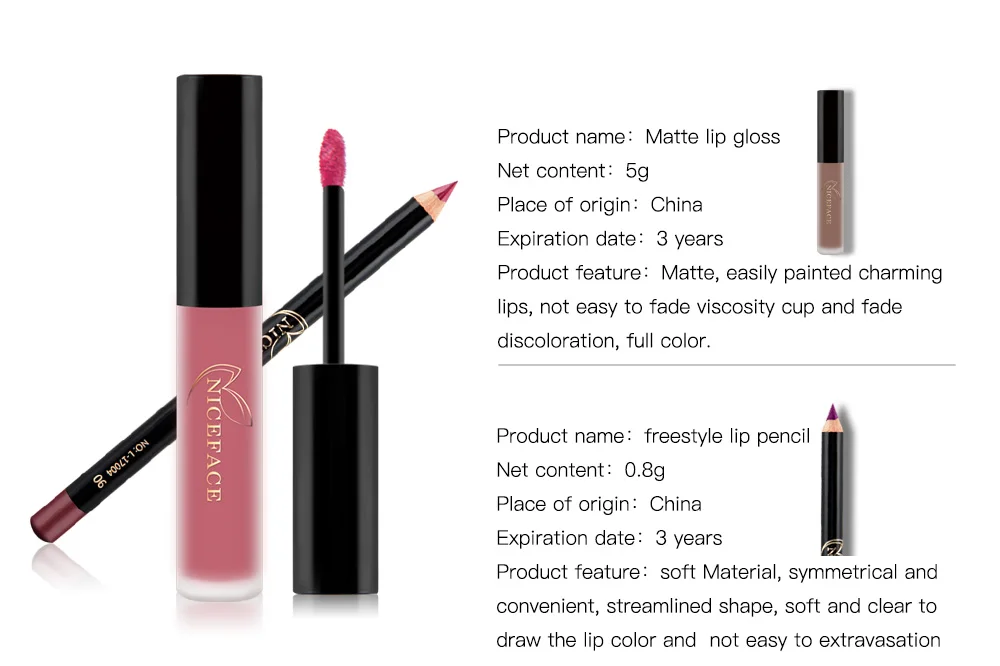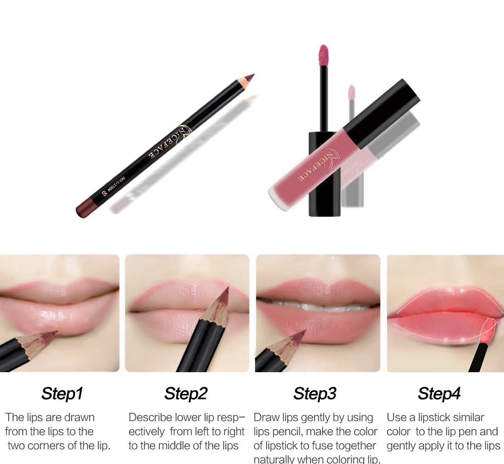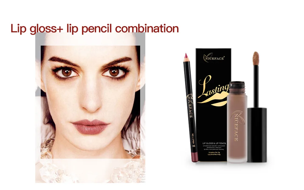 2017 NICEFACE Lipstick Sets Long Lasting Matte Liquid Lip Stick + velvet Lips Pencil Makeup Kit Waterproof Batom Sexy Nude Liquid Lip Gloss