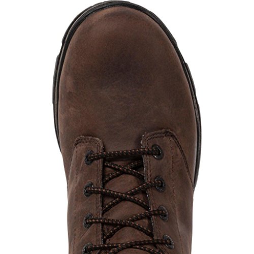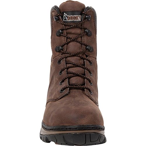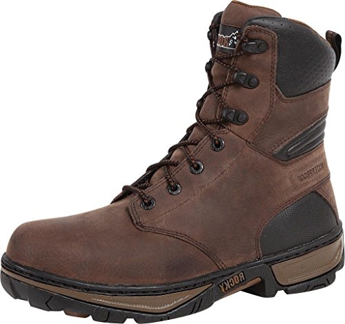 Studio : Rocky Publisher : Rocky Binding : Apparel Product Description Wanting a strong but incredibly smooth upper led to Rocky utilizing full-grain leather to build this #RK022 Forge work boot. Phenomenal hardiness and flexibility was attained by employing stitchdown construction. To prevent your heel from constantly sliding back and forth inside of these brown work boots, the footwear was equipped with a reinforced heel counter. Then, you have the padded collar which is great to have because it prevents these leather boots from digging into the back of your legs. Objects fall unexpectedly on the jobsite all the time, which is why these men's boots were built with a steel toe - it has met the ASTM F2413 Protective Toe Classification. These Rocky boots also comply with the ASTM F2413 Electrical Hazard Standard, which shields the bottom of these work boots against electrical dangers. Having a mesh lining within the interior of these brown work boots works out tremendously in your favor, because it will prevent the footwear from rubbing against your legs or causing them to chafe. You will quite enjoy having the polyurethane footbed resting underneath your feet; it's particularly flexible and supplies a generous amount of cushioning. In order to keep your legs and feet completely dry down inside of these 8 "'? boots, the footwear was assembled with Rocky waterproof construction. Assembling this Rocky footwear with a rubber outsole was key to ensuring that the bottom of these boots would be exceptionally hardwearing but still comfortable enough to stand on for great lengths of time, able to offer excellent oil and slip resistance, as well as being outstandingly flexible. There are also traction pods that contribute additional grip and considerable amounts of durability. A 90 degree heel makes the process of ascending/getting down off of equipment astoundingly carefree. Remarkable comfort. Astounding level of protection. Fantastic durability 0