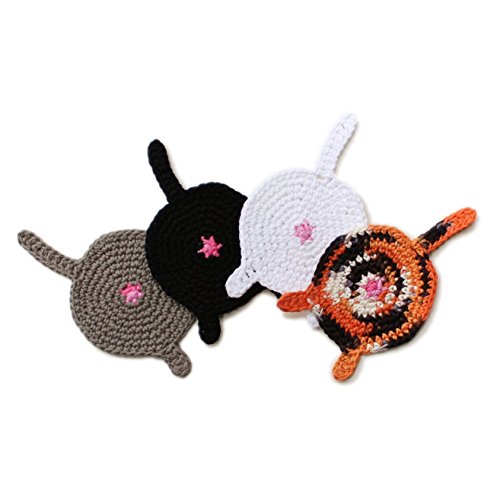 -. Title : Crochet cat butt coasters by Geekirumi! - Cotton yarn drink mats - Custom color (set of 4)