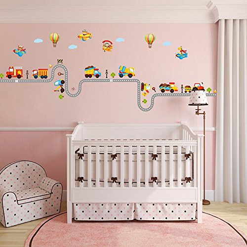 Transportation Wall Decal Baby Nursery Decor Truck Decals Airballoon Decor for Home Decorations