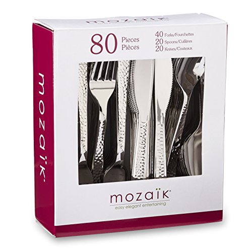 Mozaik Premium Plastic Hammered Stainless Steel Coated Assorted Cutlery, 80 pieces