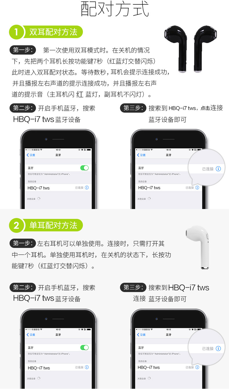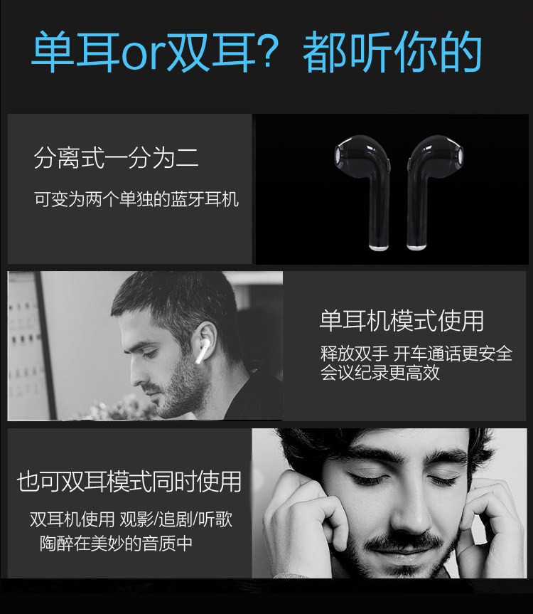 HBQ i7 TWS Stereo 4.1 Bluetooth Headset Stereo Wireless Mini