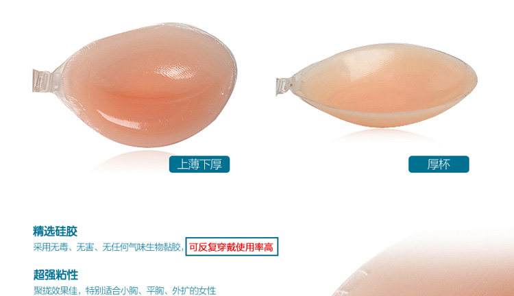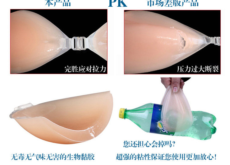 由于硅胶内衣的特殊性、贴身衣物而且是粘性的,不能二次销售,所以亲们一定要挑选好合适自己的码数,非质量问题不接受任何形式的退换货哦,如有不便,敬请谅解!