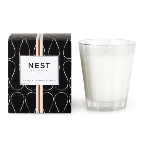 - NEST Fragrances Vanilla Orchid & Almond Classic Candle provides a warm, nutty aroma of Mediterranean almond with fruity accents of peach and apple infused with white orchid, the creaminess of coconut milk, and oriental base notes of vanilla, amber, musk and patchouli.