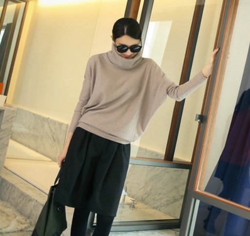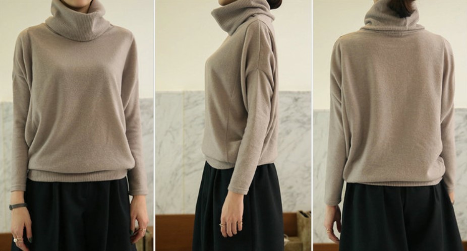 大きめタートルネックで小顔効果が期待できるプルオーバー。