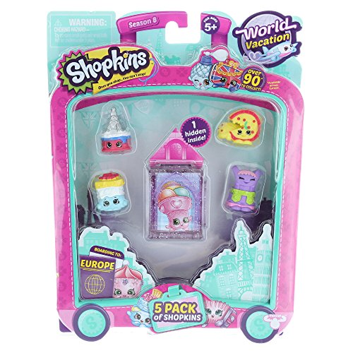 -. Feature : Collect all of the super-cute season 8 shopkins characters and you might be lucky enough to find some rare characters too! / First stop in the shopkins world vacation: europe! Collect shopkins from teams like german jet set, italian tour, spanish stopover and uk holiday in this 5-pack of shopkins. / Comes with a "hotel room" that you can connect together and build the ultimate european city for you to display your shopkins! / Comes with 1 single room and 1 collector's guide! / Includes rare ella tower cake (8-003) & rare lars lederhosen (8-055)!
