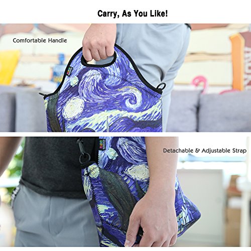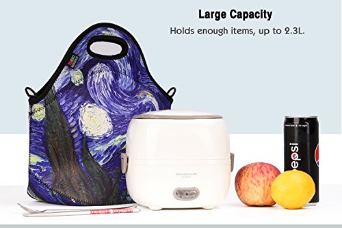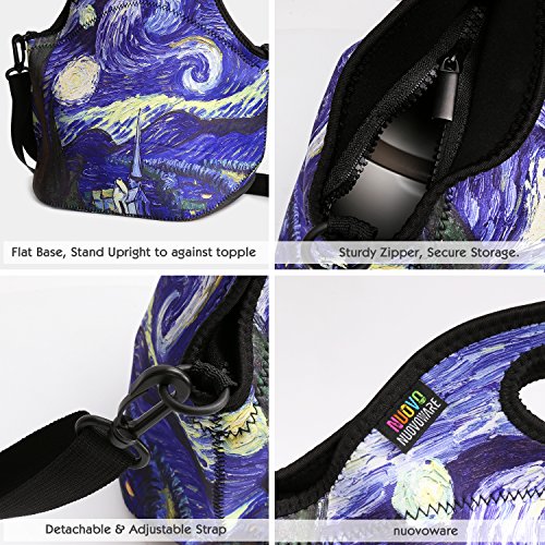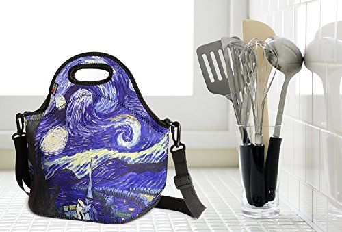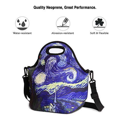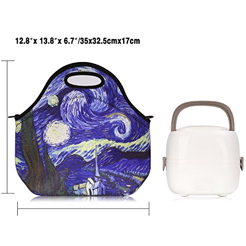 Insulated Lunch Bag, Nuovoware Neoprene Lunch Tote Reusable Picnic Bag Soft Thermal Cooler Tote Multi-purpose Grocery Container with Adjustable Crossbody Strap, Zip Closure, Starry Night