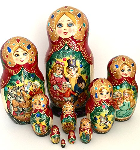 -. Feature : 10-piece Russian wooden nesting doll. Nutcracker Fairy tale / Size: 11" Tall, 4.5" Diameter, set of 10. Hand carved and hand painted by Russian artist, signed. / Made in Russia from real wood. New condition from non-smoking home / Each item is hand painted and may have slight differences in details and color. / Quick (1-2 day) handleing time. Shipping from Los Angeles, CA Combine shipping: shipping for each next item from BuyRussianGifts store is just $0.99