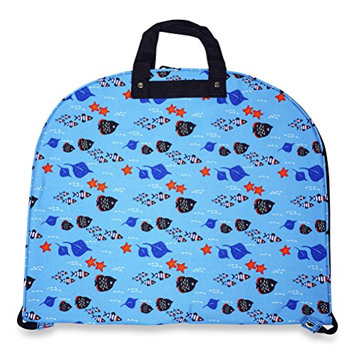 Product Description Take your dress clothes with you confidently on vacation with this stylish garment bag! This piece of lightweight luggage is great for jet setters and can be used for a quick, close by staycation or for a weekend excursion to your favorite retreat. Made out of durable 600 Denier Polyester fabric in a chic print. This garment bag folds in half and can be hung by its metal hook. The interior of this bag features multiple zipper pockets to hold shoes and accessories. Perfect for transporting cheer uniforms or theatre costumes to and from while keeping them clean and wrinkle free! Organize your closet and keep delicate, high quality items neat and pristine. 0