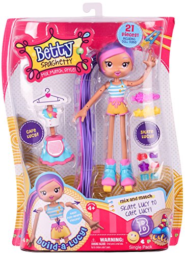 Betty Spaghetty doesn't work all day! There's always time to skate and play! Join her for some skating fun in the sun! Swap over her uniform for a some summer fun so she can skate the day away! Also comes with two hair clips and six beads
